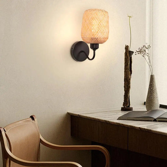 Applique Murale Rétro avec Interrupteur | Bambou, Rotin et Jute